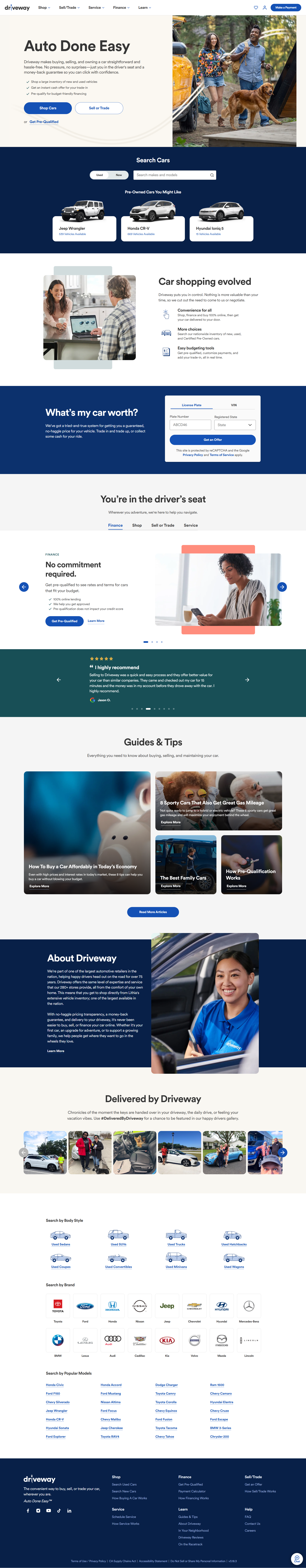 - Integrated user accounts (“My Driveway”) to manage offers, purchases, and financing